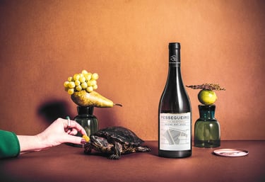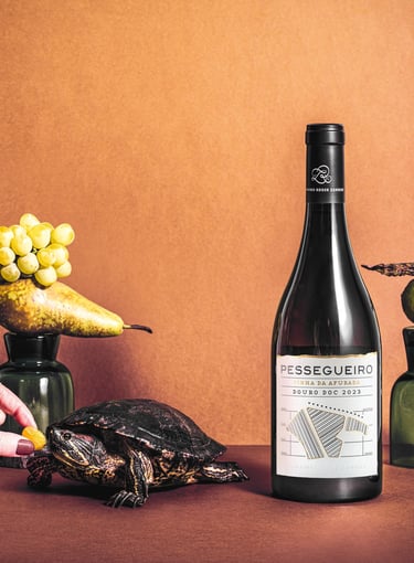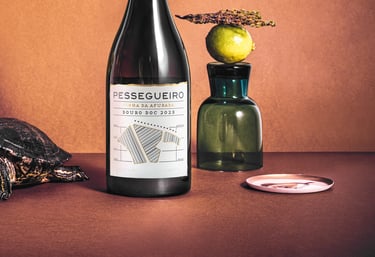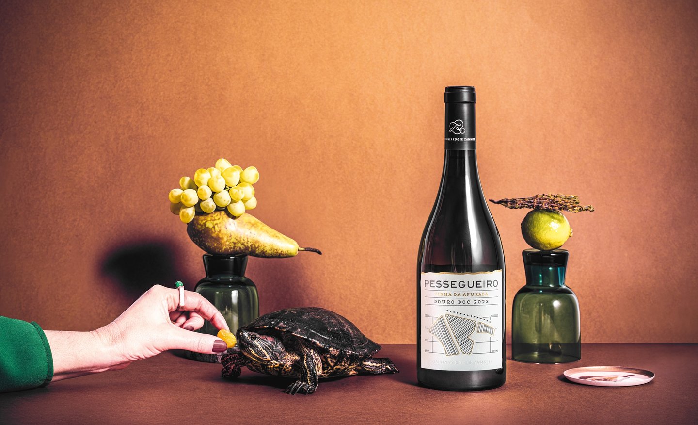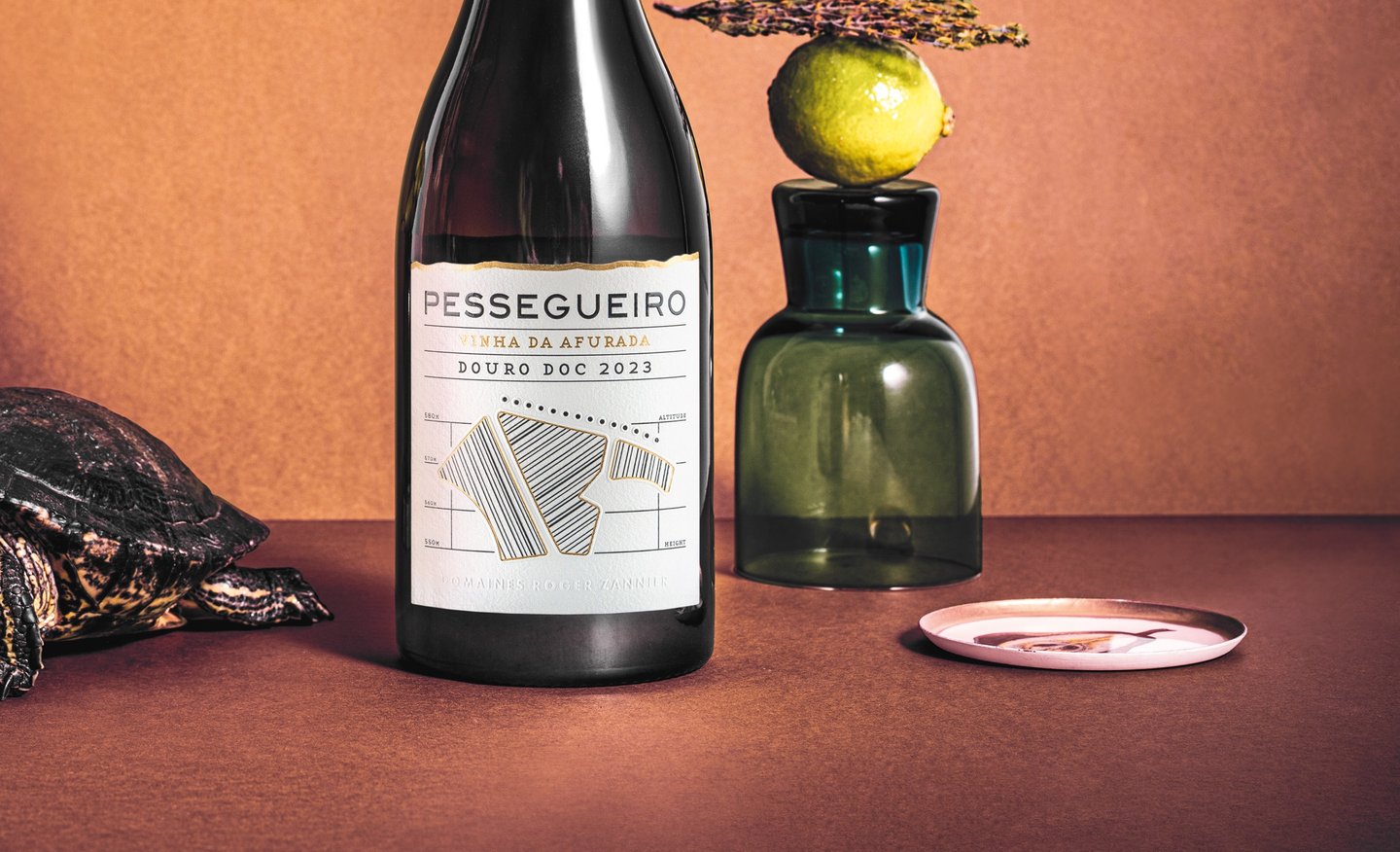 A síntese e transformação de elementos orgânicos complexos em formas simples, mas delicadas, estão no centro do design do rótulo do vinho Pessegueiro Vinha da Afurada. Inspirado na própria vinha, situada entre os 550 e os 580 metros de altitude, o rótulo traduz graficamente a geografia da propriedade numa linguagem a duas dimensões. O alinhamento das videiras é representado por linhas diagonais, enquanto as formas reais derivam de imagens aéreas. Círculos dispersos evocam as oliveiras que envolvem a vinha, criando uma ligação visual com a paisagem. Mais do que um elemento de embalagem, este rótulo é uma expressão da beleza e da complexidade natural que envolve a vinha. Um convite subtil a descobrir, em cada gole, a essência do lugar.